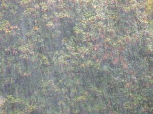 ザーザーぶりの雨の中の