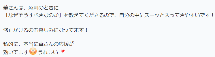 そんな私の素敵なコンサル生さんの声をちらっとお見せします。