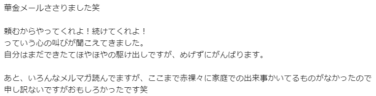 前回の華金メールに、共感メールや面白かったと感想メールなど、