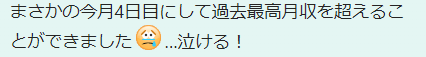 - 過去最速で、5桁いったという方(しかもまだ月の三分の一も経ってないのに)